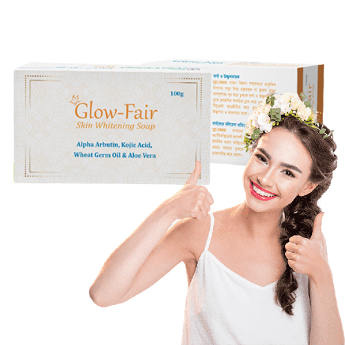 - গ্লো-ফেয়ার স্কিন হোয়াইটনিং সোপ হল একটি ঔষধযুক্ত বার যা ত্বককে উজ্জ্বল, কালো দাগ কমাতে এবং ত্বকের রঙকে সমান করার জন্য তৈরি করা হয়েছে। এতে আলফা আরবুটিন, কোজিক অ্যাসিড, গমের জার্ম অয়েল এবং অ্যালোভেরার মিশ্রণ রয়েছে যা ত্বককে উজ্জ্বল, নরম এবং স্বাস্থ্যকর করে তোলে। ব্রণ, দাগ এবং কালো জায়গাগুলির চিকিৎসার জন্য এই সাবানটি তৈরি করা হয়েছে।