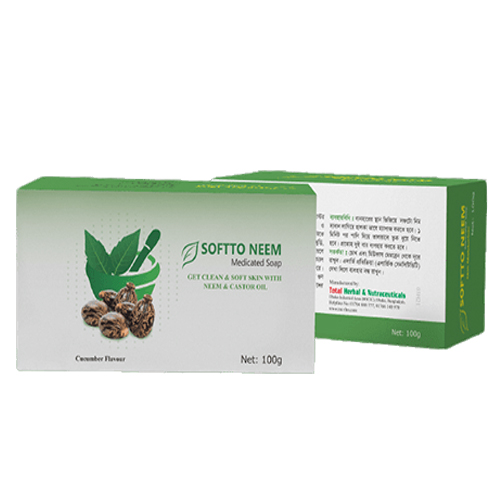 - সফটটো নিম মেডিকেটেড সাবান হল নিম তেল এবং ক্যাস্টর অয়েল সমৃদ্ধ একটি দৈনন্দিন ব্যবহারের ক্লিনজিং বার, যা আপনাকে পরিষ্কার, স্বাস্থ্যকর এবং নরম ত্বক অর্জনে সহায়তা করার জন্য তৈরি করা হয়েছে। এটি বিশেষ করে ঘাম, ধুলো, জীবাণু বা ঋতু পরিবর্তনের কারণে বারবার ত্বকের অস্বস্তি অনুভব করেন এমন লোকদের জন্য সহায়ক।